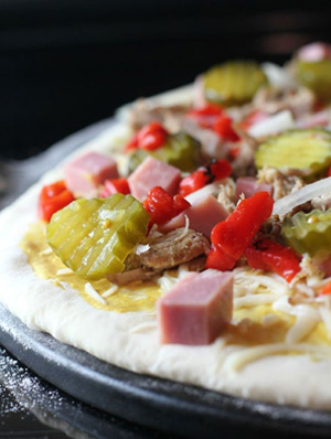 سپس خمیر به ضخامت تقریبی 1.5 الی 2 میلیمتر پهن گردد. پس از طی زمان تخمیر، با مواد روکش خمیر پیتزا، بسته به میل شما مثل -گوشت ،پنیر، تخم مرغ و.....تزیین شود و سپس در فر با بخار پخت گردد.