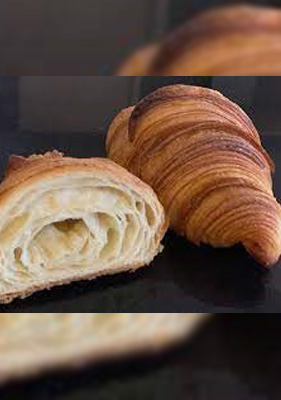 مقدار لازم از کره را به صورت ورقه ای پهن کنید و تا زمان استفاده در دمای 14 درجه سانتی گراد نگه داری کنید. تمامی مواد را تا رسیدن به خمیر محکم و یکدست ورز دهید. بعد از زمان استراحت، به ازای هر 1 کیلوگرم خمیر ، 300-250 گرم کره را بین 3 لایه قرار داده و تا کنید. به مدت 30 دقیقه این کار را انجام دهید. هر لایه خمیر را در دمای 8 درجه سانتی گراد نگه دارید. قبل از بازکردن خمیر آن را به مدت 40 دقیقه در دمای یخچال نگه دارید و سپس خمیر را باز کرده و به شکل دلخواه در آورید.